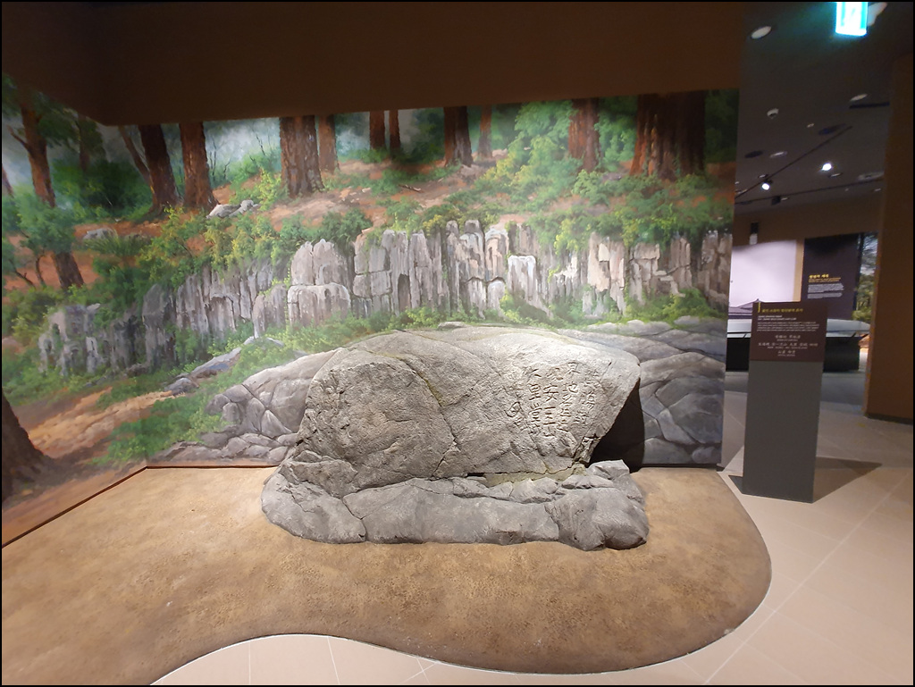 울진군 금강송면 소광리에 있는 봉산의 경계를 세긴 황장봉계 표석을 그대로 재현했네요. 봉산은 국가에서 일반인이 벌채를 금지하기 위해 실시한 제도며 황장은 금강송의 목심으로 목재가 견고하고 오래되어도 썩지 않아 황실의 관을 짜는 재료로 사용했다고 합니다. 즉, 황장봉계란 국가에서 금강송을 보호하기 위한 구역의 경계를 알리는 표석입니다.