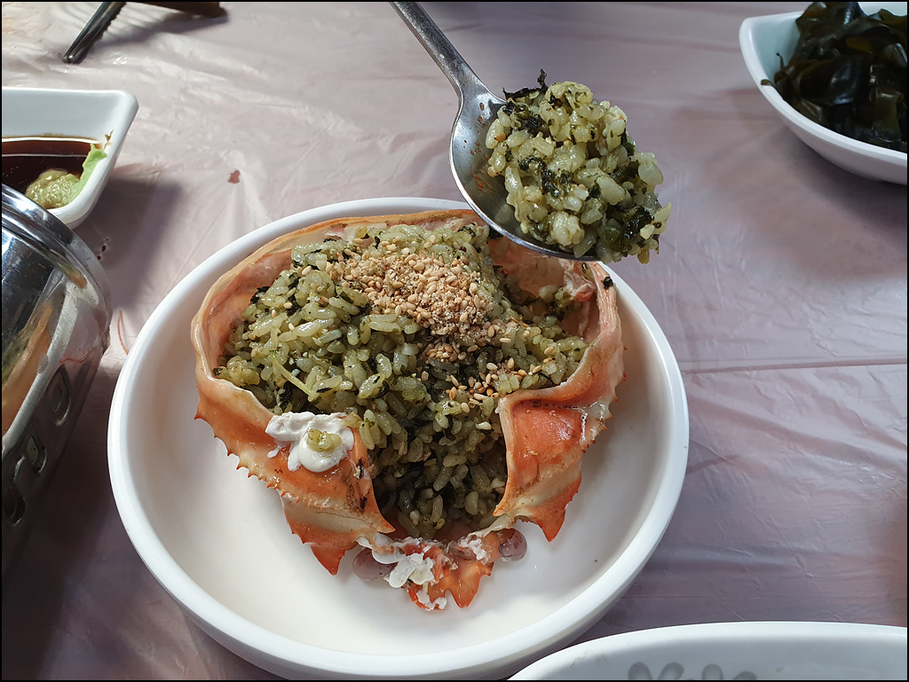 안 볶은 게장 볶음밥과 안 매운 매운탕으로 마무리...